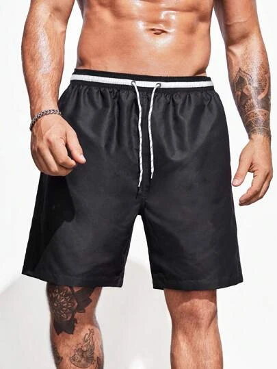 Men Drawstring Waist Slant Pocket Swim Trunks