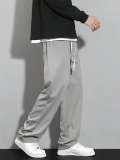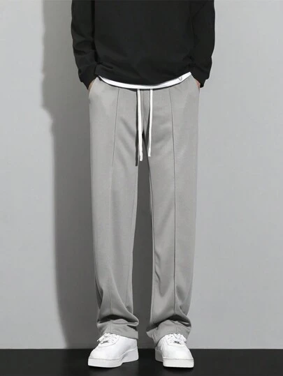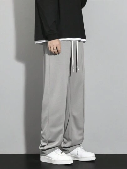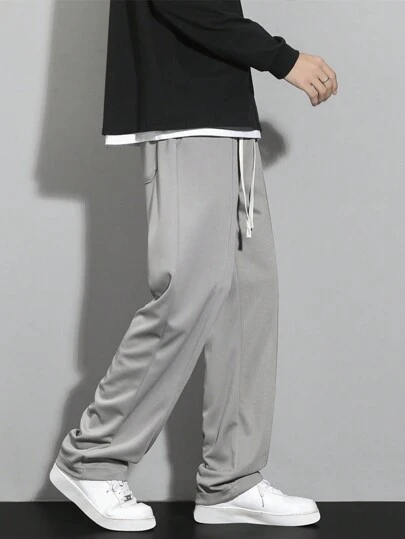 Men Drawstring Waist Straight Leg Pants