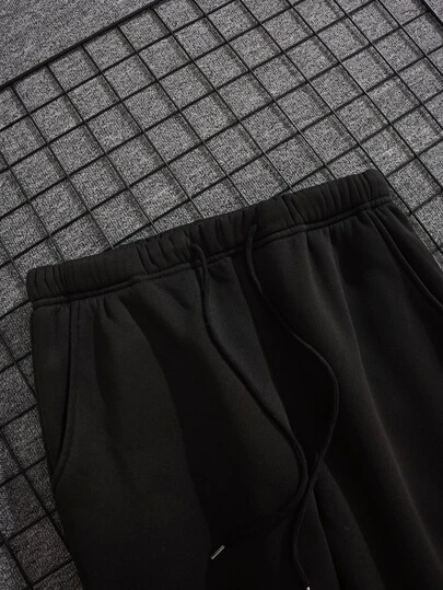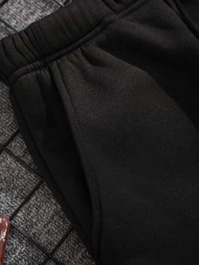 Men Drawstring Waist Thermal Lined Sweatpants