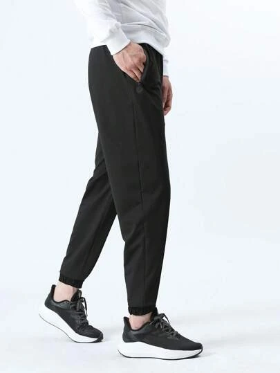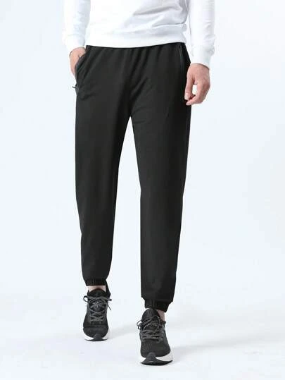 Men Drawstring Waist Zip Pocket Side Sweatpants