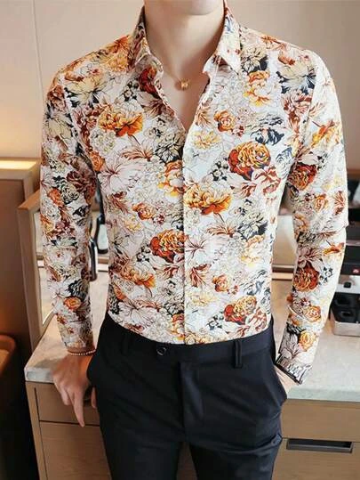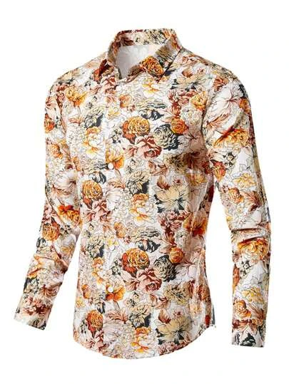 Men Floral Print Button Up Shirt