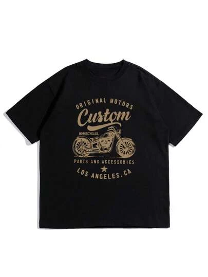 Men Letter & Motorcycle Print Tee