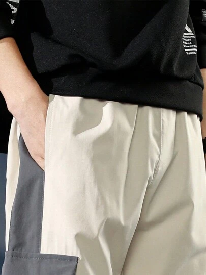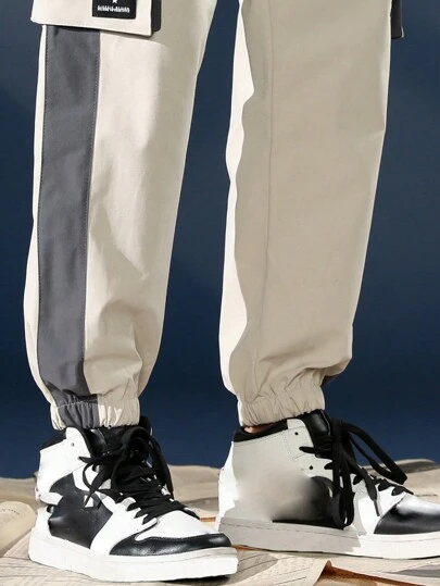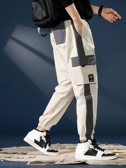 Men Letter Patched Flap Pocket Side Cargo Pants