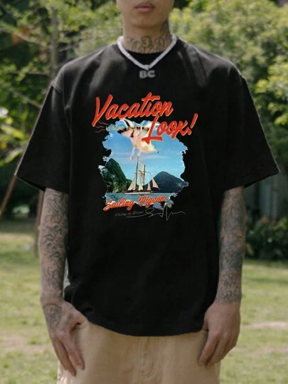 Be the first to review “Men Letter & Sailboat Print Tee” Cancel reply