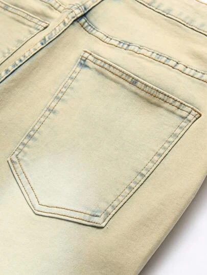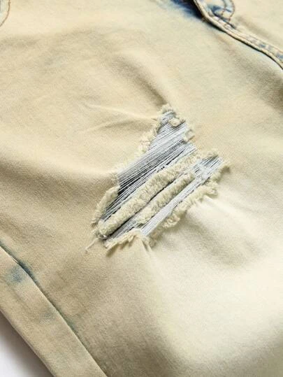 Men Ripped Frayed Bleach Wash Jeans