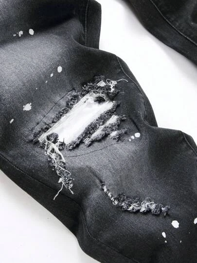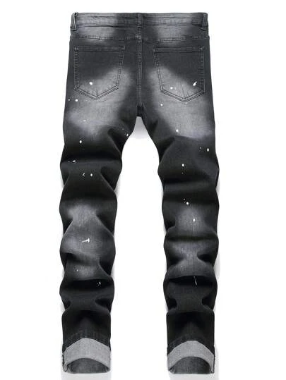 Be the first to review “Men Splash Ink Print Ripped Frayed Skinny Jeans” Cancel reply