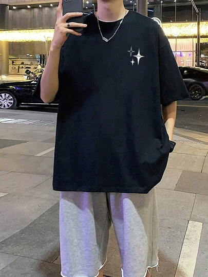 Men Star Print Drop Shoulder Tee