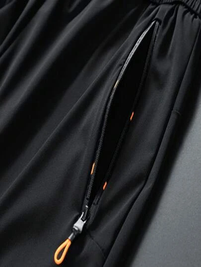 Men Zipper Pocket Drawstring Waist Sweatpants