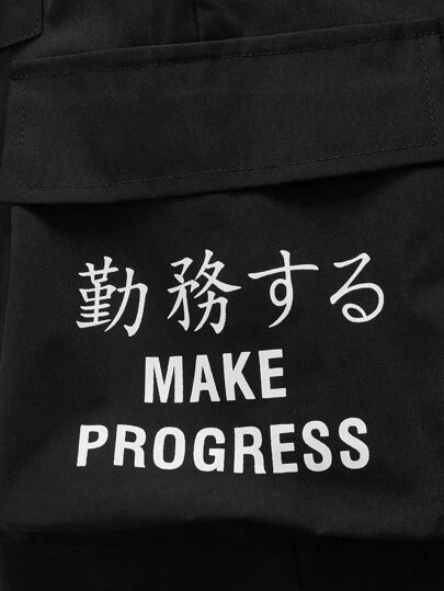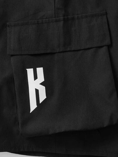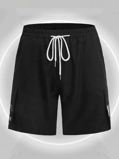 ROMWE Cyber Luvr Guys Letter Graphic Flap Pocket Side Drawstring Waist Cargo Shorts