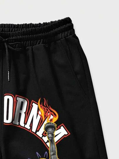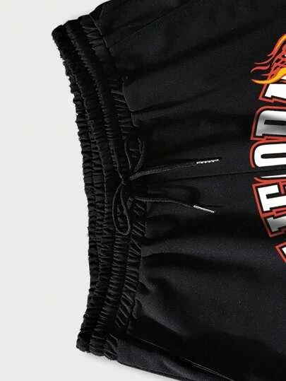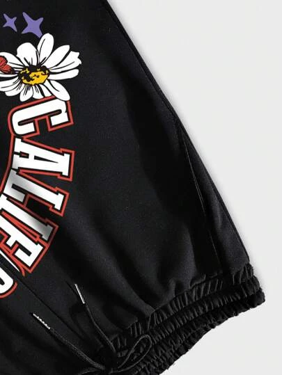 ROMWE Guys Floral & Letter Graphic Drawstring Waist Shorts