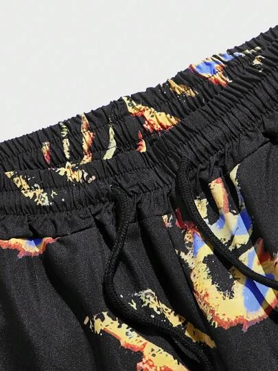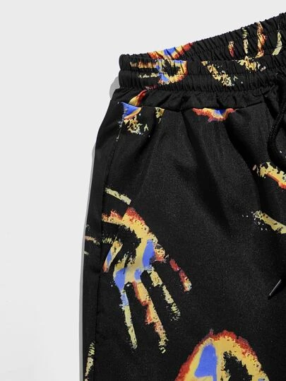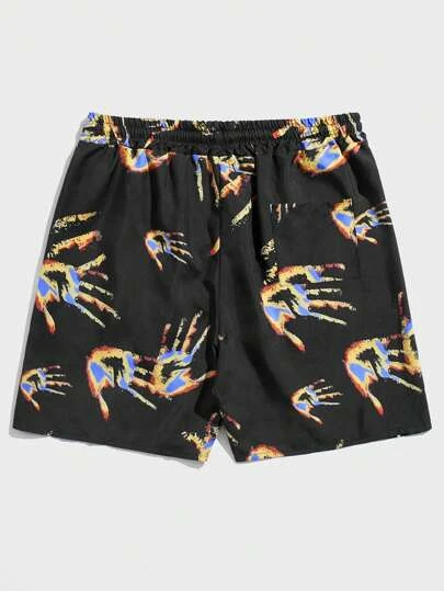 ROMWE Guys Hand Print Drawstring Waist Shorts