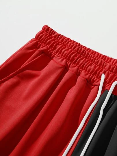 ROMWE Guys Letter Graphic Two Tone Drawstring Waist Shorts