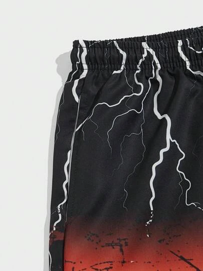 ROMWE Guys Ombre Slogan Graphic Drawstring Waist Shorts