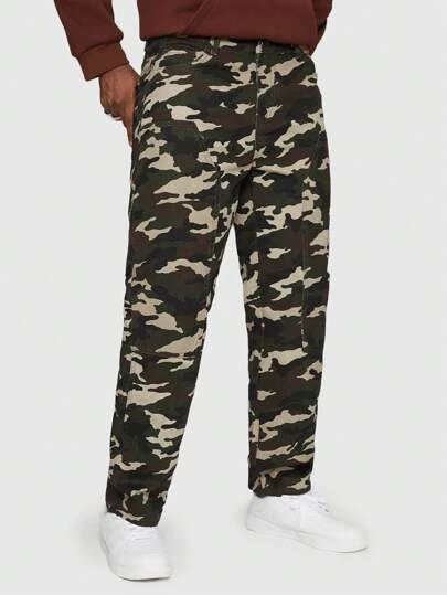 ROMWE Street Life Guys Camo Print Flap Pocket Side Cargo Jeans