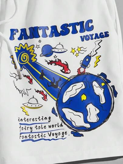 ROMWE Street Life Guys Cartoon & Slogan Graphic Drawstring Waist Shorts