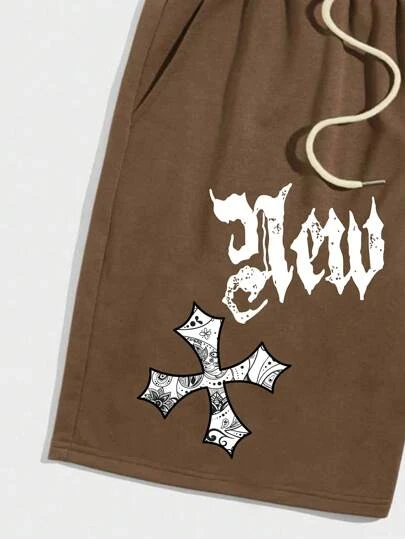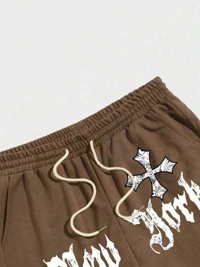 ROMWE Street Life Guys Cross Letter Graphic Drawstring Waist Shorts