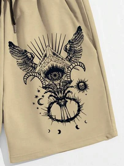 ROMWE Street Life Guys Eye & Wings Print Drawstring Waist Shorts