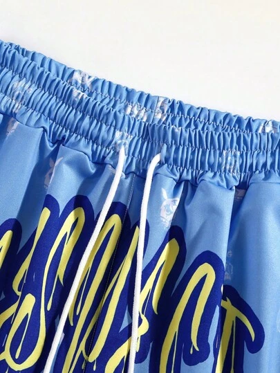 ROMWE Street Life Guys Skull & Letter Graphic Drawstring Waist Shorts