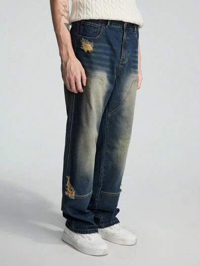 ROMWE Street Life Guys Slant Pocket Straight Leg Jeans