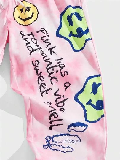ROMWE Street Life Guys Tie Dye Slogan & Expression Print Drawstring Waist Pants