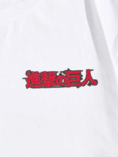 ROMWE X Attack On Titan Guys Japanese Letter & Figure Graphic Tee