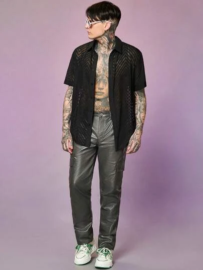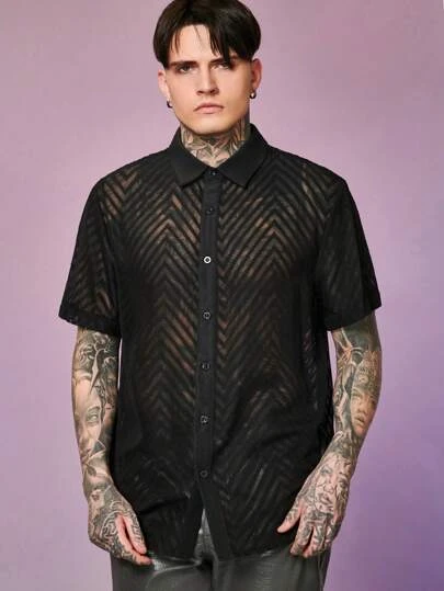 SHEIN Manfinity Fever City Men Chevron Print Button Front Shirt