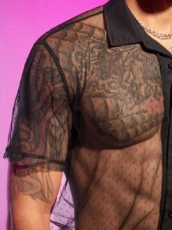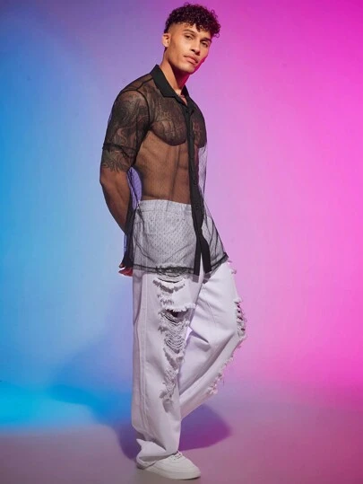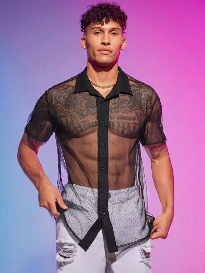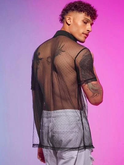 SHEIN Manfinity Fever City Men Solid Button Front Mesh Shirt