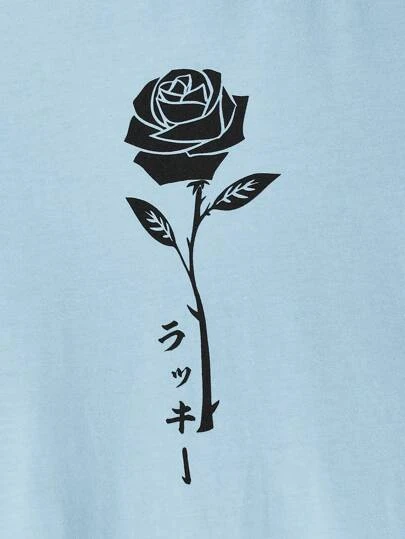 SHEIN Manfinity Homme Men Floral & Japanese Letter Graphic Tee