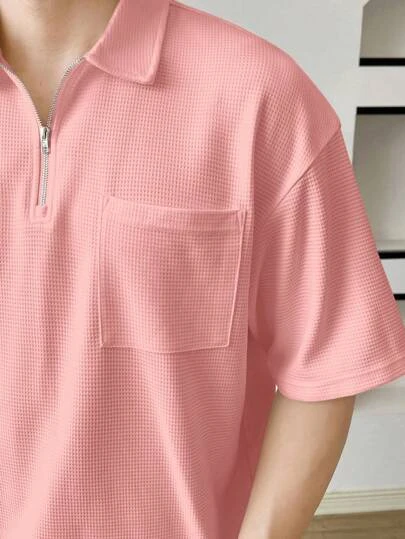 SHEIN Manfinity Hypemode Men Quarter Zip Pocket Patched Drop Shoulder Polo Shirt