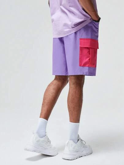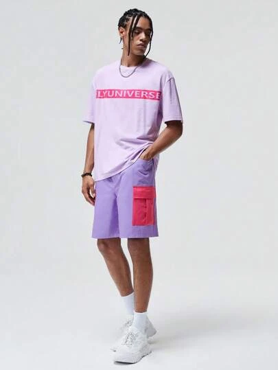 SHEIN X IFLYUNIVERSE Men Cotton Flap Pocket Side Drawstring Waist Shorts
