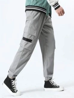 Manfinity Hypemode Men Letter Graphic Buckle Detail Flap Pocket Drawstring Waist Cargo Pants